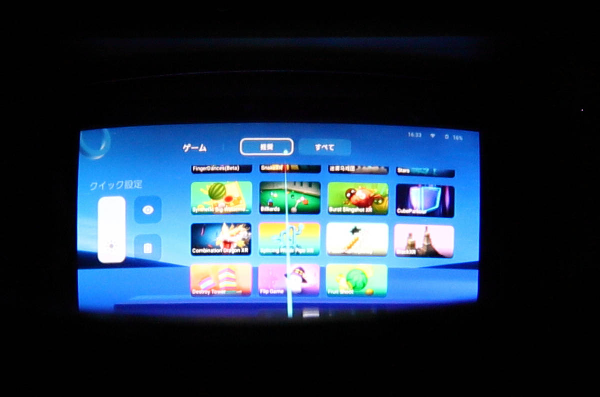 画面の大きさは、仕様では「6m先に201インチのスクリーン」となっています。もうちょっと身近な感覚で言うと、「1.8m先に48インチの画面」といったところです。