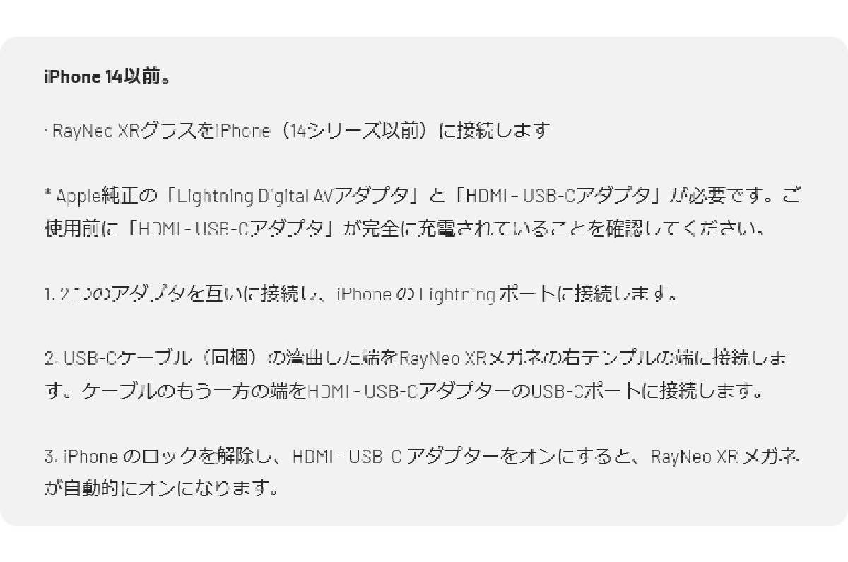 RayNeo Air 3sは、外部機器を接続して、その機器の映像を表示するというのが基本的な使い方です。