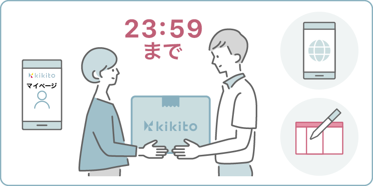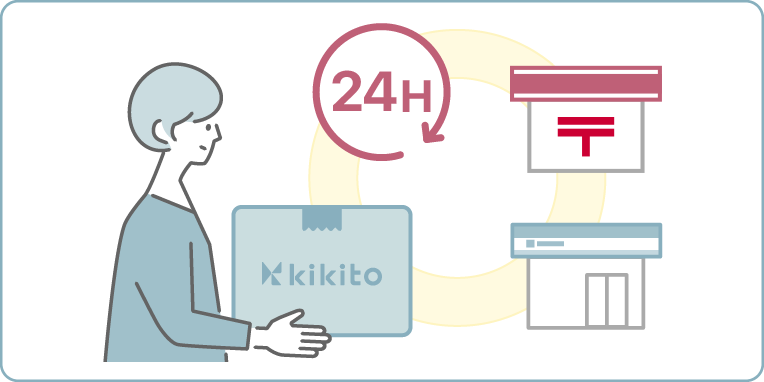 kikitoのマイページの注文履歴より、「ホームページから情報を記入して返却」にある受付窓口(郵便局、ローソン、宅配ロッカー)を指定してください。